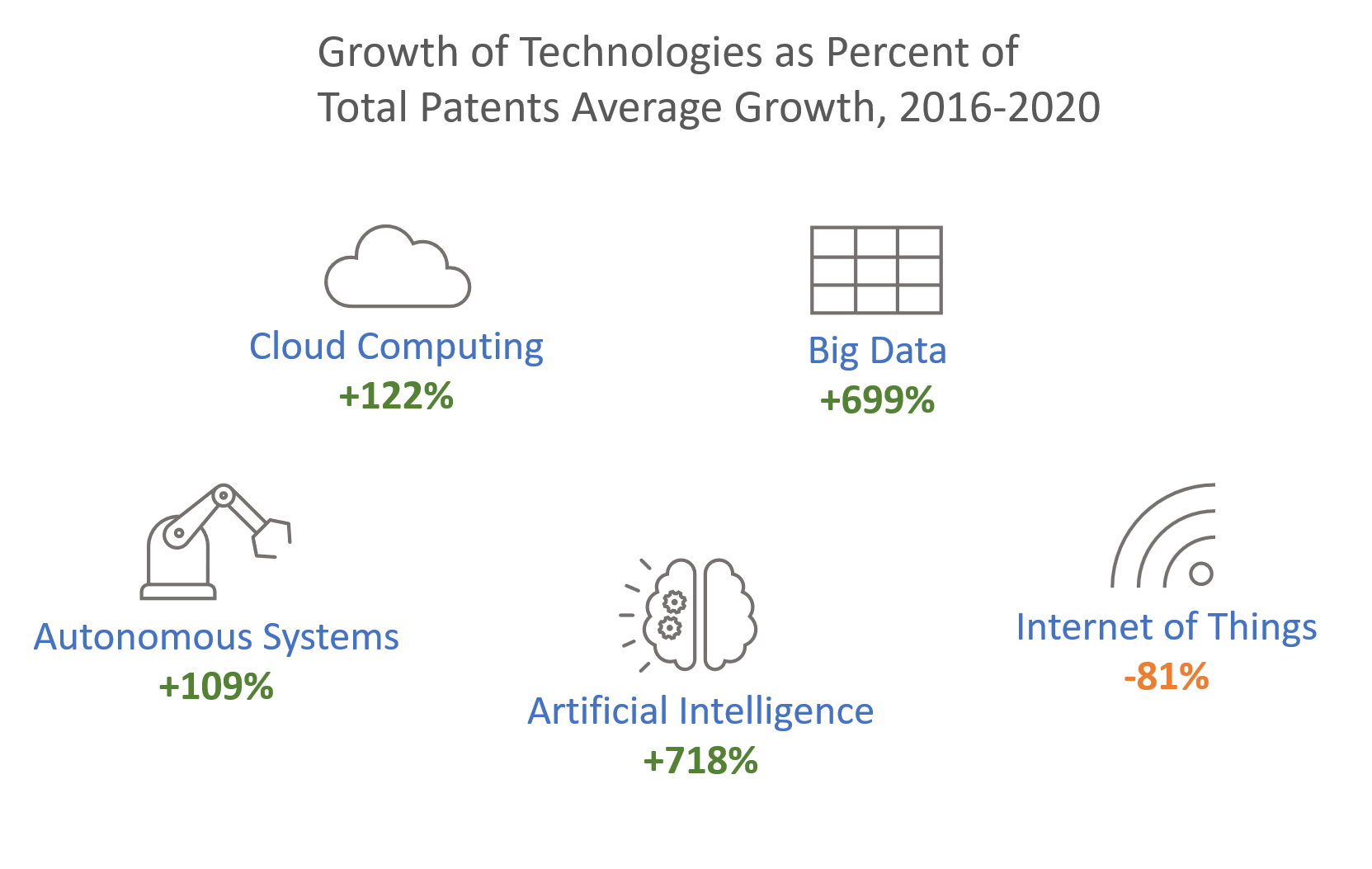A patent is a legal monopoly in the country where it is promulgated. The race to own these legal moats, throughout the world, has already begun. The WIPO 2022 report concludes that AI patents grew faster than any category of patents, including all other frontier technologies, between the years 2016 and 2020 [1]. The current trend for getting patents in the AI space is only accelerating patent filings worldwide.